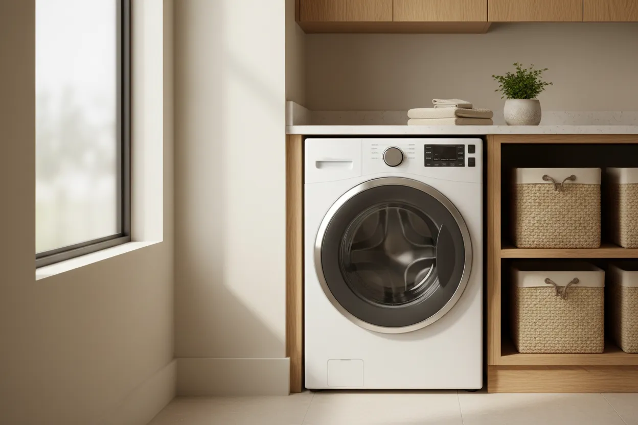 เครื่องซักผ้าฝาหน้าต้องการพื้นที่เปิดประตูด้านหน้า ไม่เหมาะกับมุมแคบหรือติดผนัง รอบซักอา…